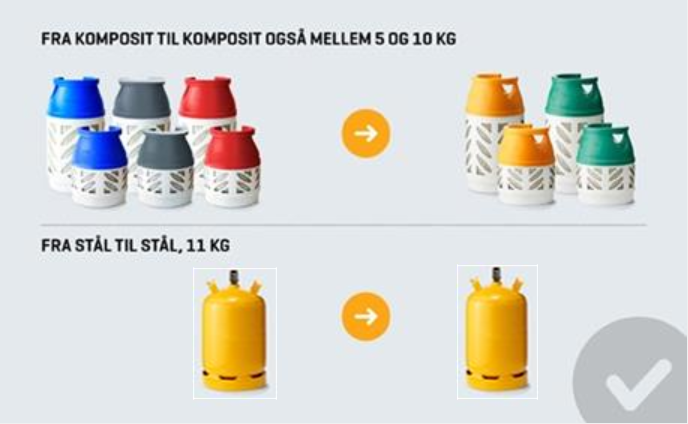 Vi ombytter følgende gasflasker uanset mærke:
